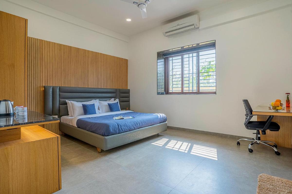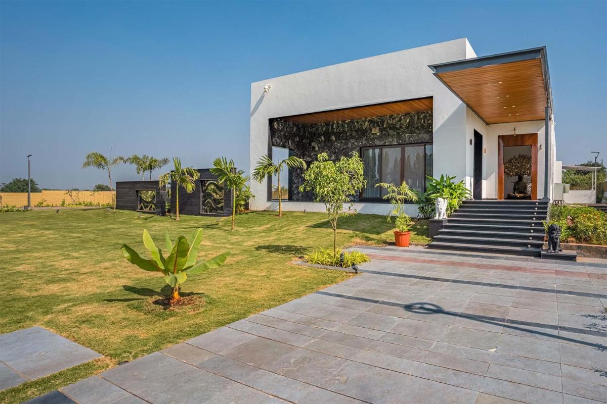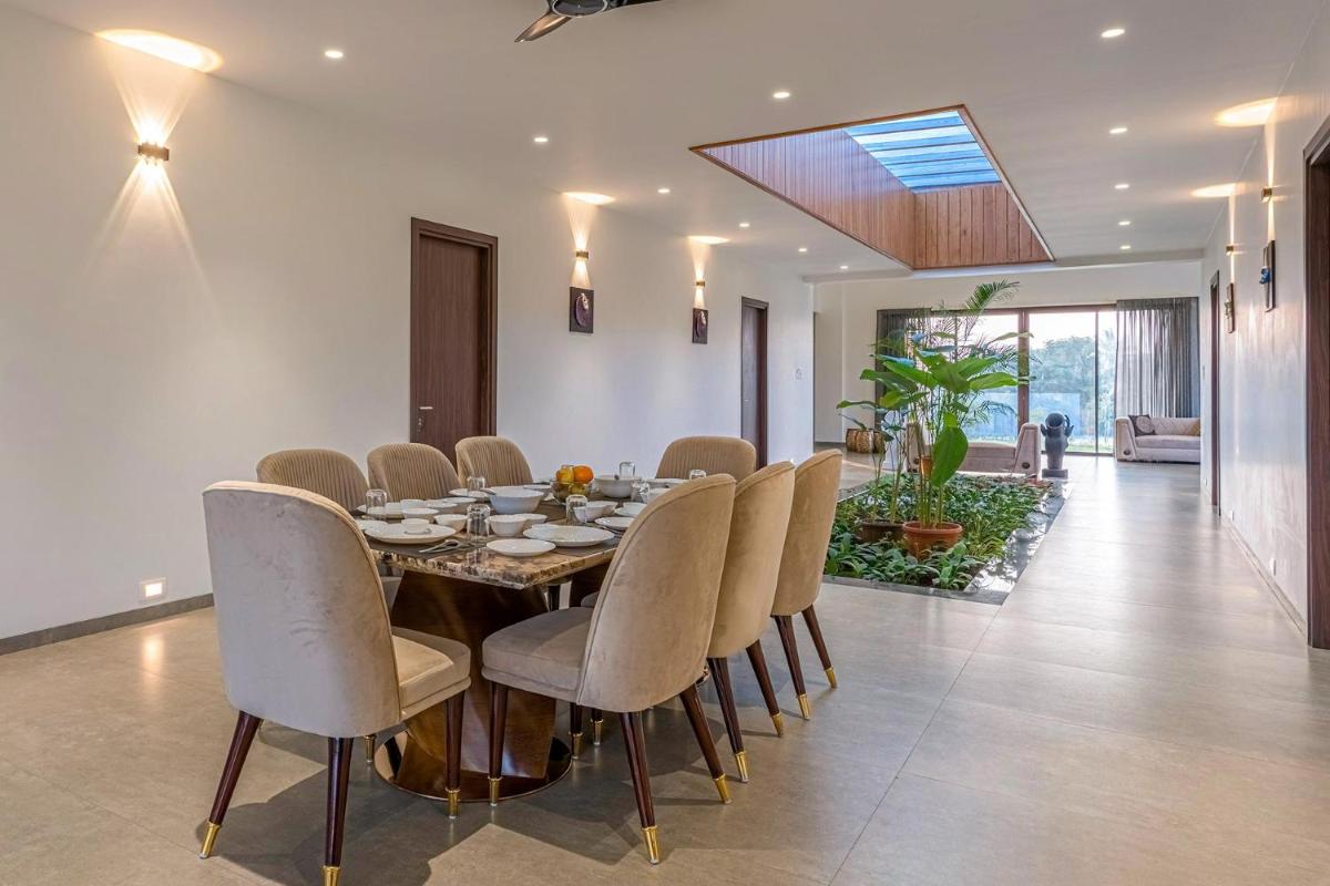 StayVista's Le Bon Horizon - Hillside Elegance with Chic Interiors, Poolside Serenity & Picturesque Gazebo - Proximity to Sula, situated in Nashik, offers an exquisite retreat nestled among verdant hills. This private villa boasts a serene outdoor pool, providing guests with a refreshing respite after a day exploring the nearby temples. Free private parking ensures easy access to this charming abode, allowing visitors to unwind in luxury. With its spacious 334 square meters, the villa offers ample space for relaxation and leisure activities. Each bedroom is appointed with comfort and convenience, featuring a walk-in shower and free toiletries, ensuring a luxurious stay. The villa's fully-equipped kitchen comes complete with a microwave, catering to culinary adventures within reach. An inviting living room invites guests to gather and enjoy the tranquility of their surroundings. A flat-screen TV keeps entertainment at hand, making evenings more enjoyable. The villa's private entrance adds an extra layer of privacy and security. Relax in the shared lounge area, offering another space to unwind and socialize with fellow travelers. For those seeking additional amenities, the villa includes a picturesque gazebo, enhancing the overall experience. The villa is conveniently located near Someshwar Temple, just 3.4 miles away, and closer to Sundarnarayan Temple, which is approximately 7.9 miles distant. For those arriving by car, the nearest airport is 20 miles away, making transportation to and from the property straightforward. This elegant retreat promises a memorable stay in one of India’s most beautiful locales.