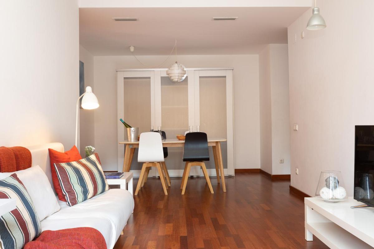 In addition to the primary amenities, the apartment boasts a cozy outdoor dining area where guests can enjoy meals al fresco, surrounded by the beauty of Barcelona. The nearby locations offer a range of activities, from visiting museums like Museu de la Musica and Museu d'Història de la Ciutat to experiencing the thrill of visiting Camp Nou or enjoying the unique exhibits at Pis-Museu Casa Bloc.