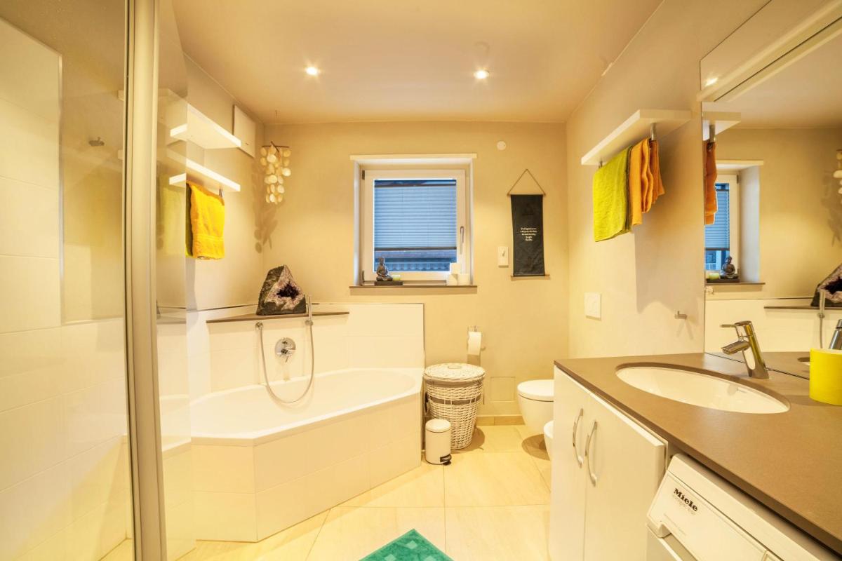 High quality kitchen and spacious bathroom.