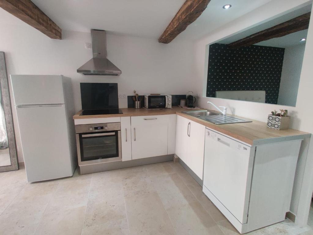 Logement Neuf Centre du Village aux Pieds du Château, situated in the heart of Grimaud, offers a unique experience just 21 miles from La Favière and 29 miles from Villa Noailles Art Centre. This charming apartment, nestled within a 16th-century building, provides guests with a serene retreat perfect for relaxation and exploration. Situated approximately 23 miles from Saint-Raphaël Valescure Train Station and 5.1 miles from Port Grimaud, this apartment caters to travelers seeking an authentic rural atmosphere. Enjoy a culinary delight with the nearby restaurant offering exquisite French cuisine, while staying connected thanks to complimentary Wi-Fi coverage throughout the property. The spacious apartment boasts a fully equipped kitchen with amenities such as a dishwasher and coffee maker, making cooking a breeze. Guests can relish their stay in comfort with plush towels and fresh bed linens included in the package. Privacy is ensured by featuring a private entrance, ensuring a comfortable space for rest and relaxation. The apartment is conveniently located near popular attractions such as Chateau de Grimaud, Le Pont des Fées, and Penitents Chapel, allowing visitors ample opportunities for outdoor adventures like fishing and hiking. Additionally, the proximity to Toulon-Hyères Airport makes transportation easy, with the airport being approximately 28 miles away. This inviting abode offers a blend of modern convenience and historical charm, ideal for those looking to immerse themselves in local culture and relax amidst nature's beauty.