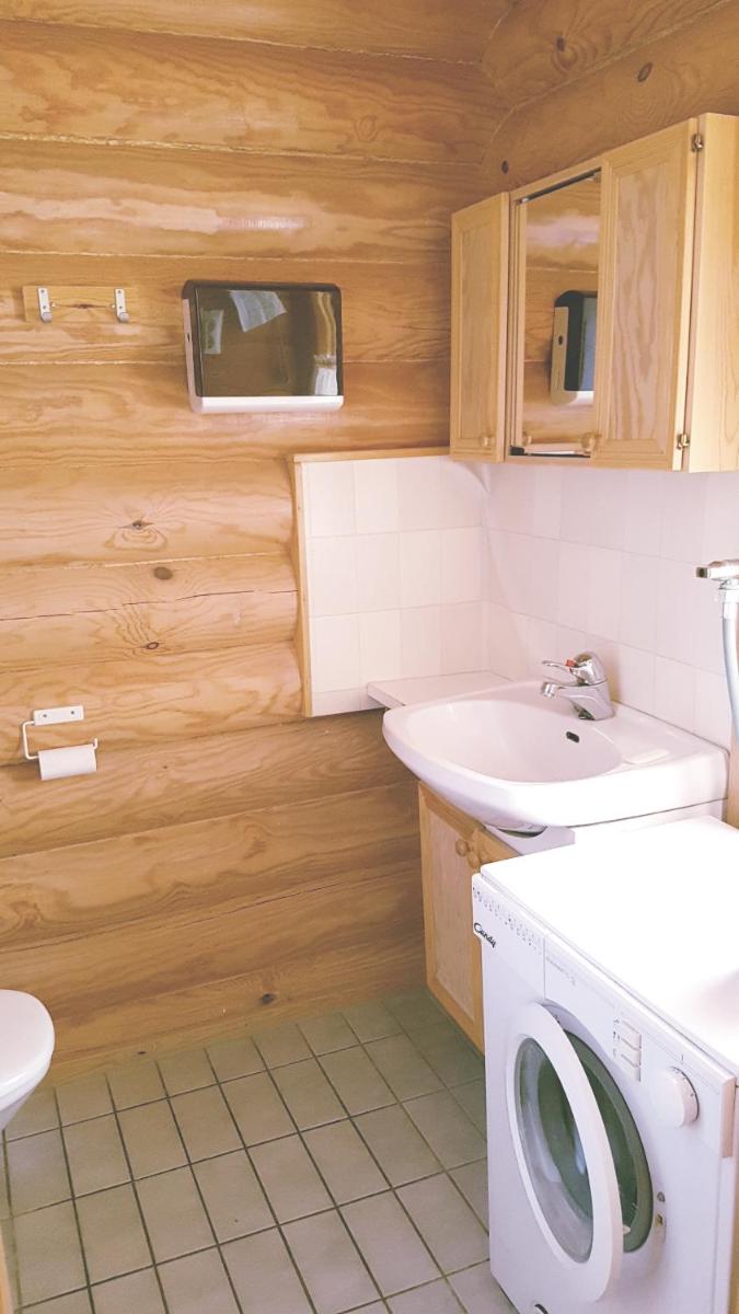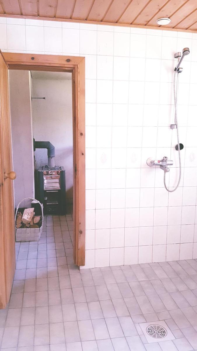 The wooden sauna provides a cozy retreat.