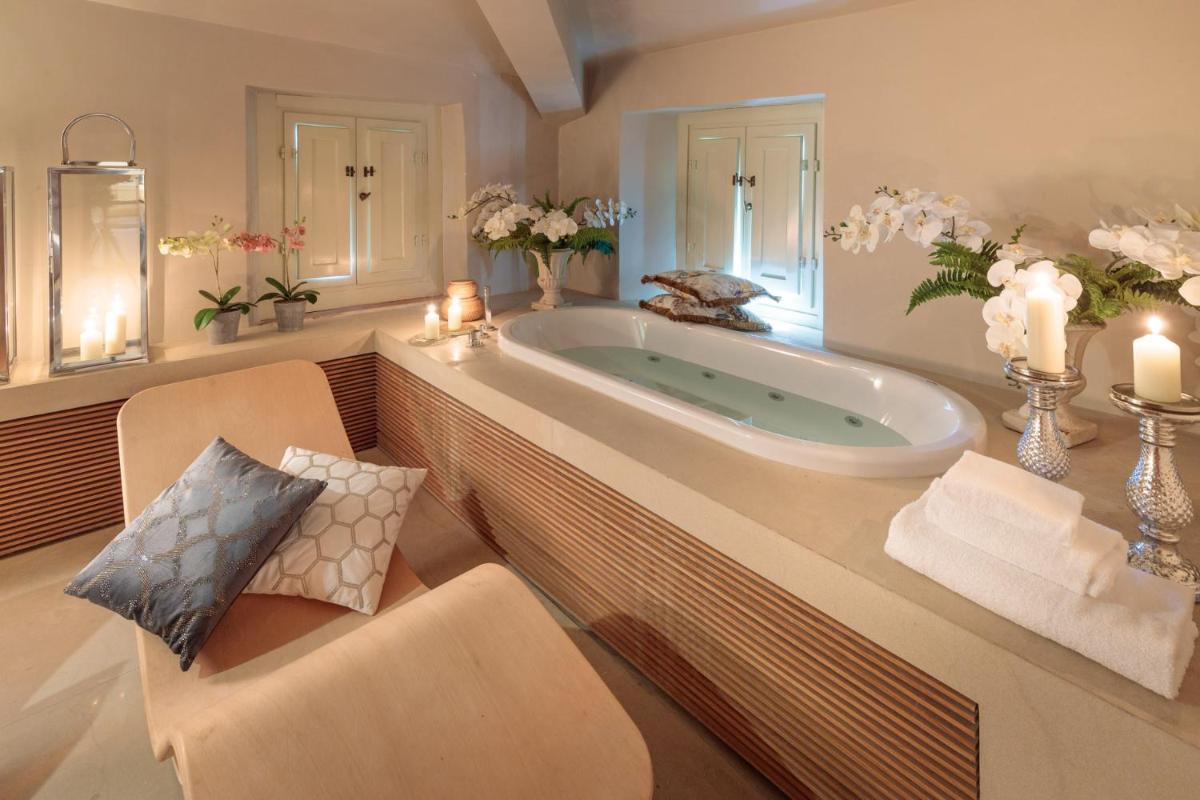 The villa's large outdoor area includes a picturesque swimming pool surrounded by lush gardens, providing a perfect spot for sunbathing and enjoying the warm Mediterranean breeze. An additional luxury addition is a cozy hot tub, allowing guests to unwind after a long day of exploring the nearby attractions.