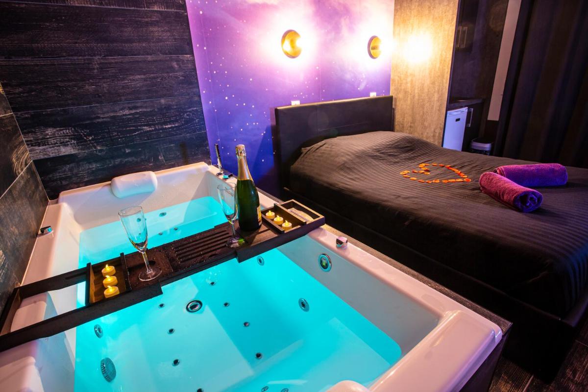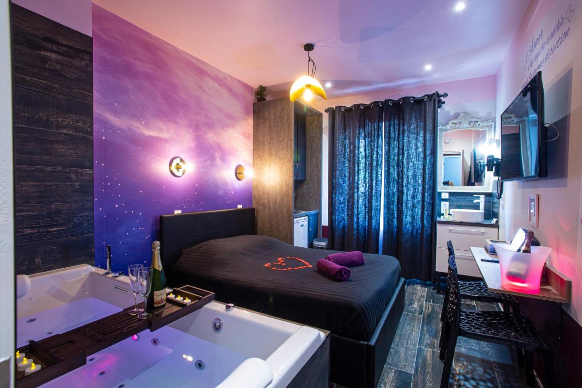 The LOVE ROOM - SPECIAL AMOUREUX - HYPER CENTRE - Lorient offers guests an authentic experience at their conveniently located property, situated just 16 minutes' walk from Lorient Train Station. This charming accommodation boasts amenities such as a hot tub and spa facilities, making it ideal for relaxation after exploring the area's vibrant culture and attractions. Conveniently placed near key landmarks like the Football Club Lorient and Parc des Expositions Lorient, the property provides easy access to various points of interest within a short stroll.