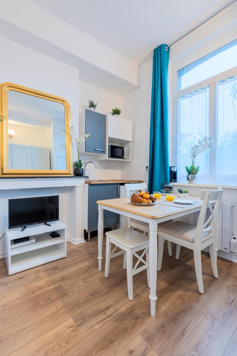 This charming apartment, situated in Douai, boasts an ideal location within walking distance to the prestigious Ecole des Mines de Douai and Douai Train Station. Guests appreciate its serene environment, offering breathtaking views of a garden and inner courtyard. Equipped with complimentary WiFi, this studio features a well-equipped kitchen, complete with a microwave and toaster, making culinary adventures effortless.