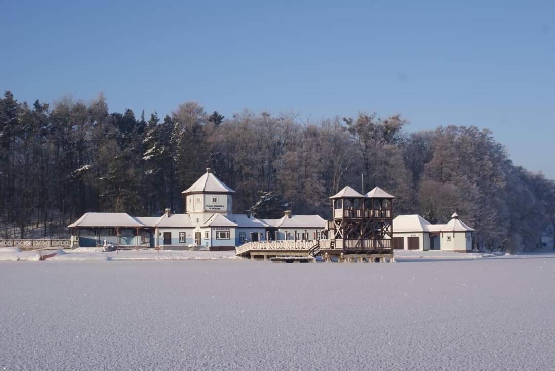 Yes, there is a beach called Hancza Lake within walking distance of the property.