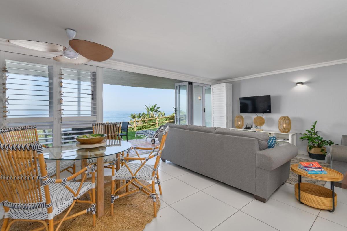 Pelicans Pad at Chaka's Cove, conveniently situated in the Shakas Rock district of Ballito, offers guests a luxurious retreat overlooking Thompson's Bay Beach. This air-conditioned apartment boasts stunning sea views and a spacious sun terrace, providing an idyllic setting for relaxation and leisure. With easy access to free Wi-Fi and free private parking, visitors can comfortably explore their surroundings.