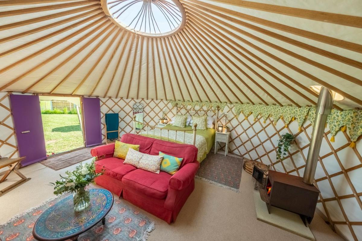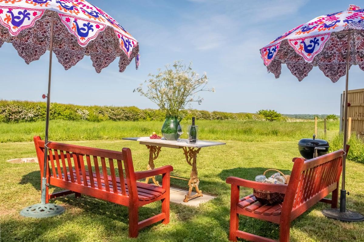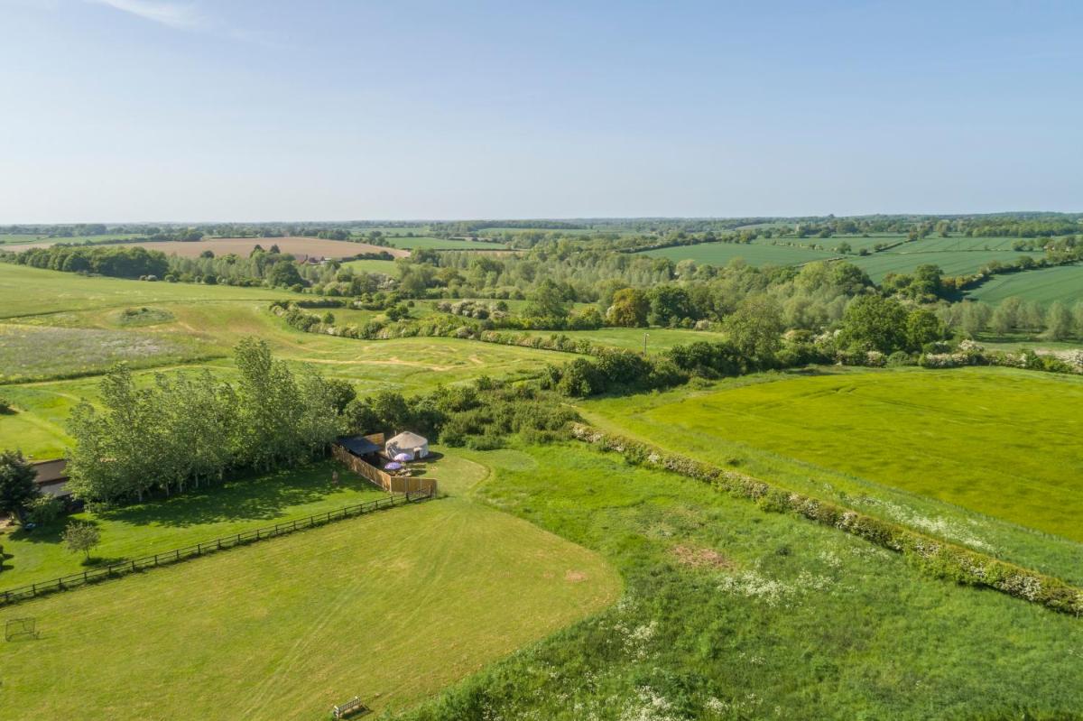 Luxury glamping in Constable Country – Valley View Yurt offers an idyllic retreat just 12 miles from Hedingham Castle and 21 miles from Freeport Braintree. Nestled in the scenic countryside, this luxurious yurt provides an unforgettable stay with its spacious interior and prime location. Enjoy the convenience of free private parking right outside your door and private check-in/check-out services. For those seeking warmth during chilly evenings, the luxury tent boasts an inviting outdoor fireplace. Relax by day and unwind after dinner under the stars with the yurt’s cozy seating area and fully equipped kitchenette, which includes a stovetop and essential kitchenware. Perfectly suited for both cooking enthusiasts and those who prefer dining in, the yurt also comes with a built-in barbecue for impromptu feasts.