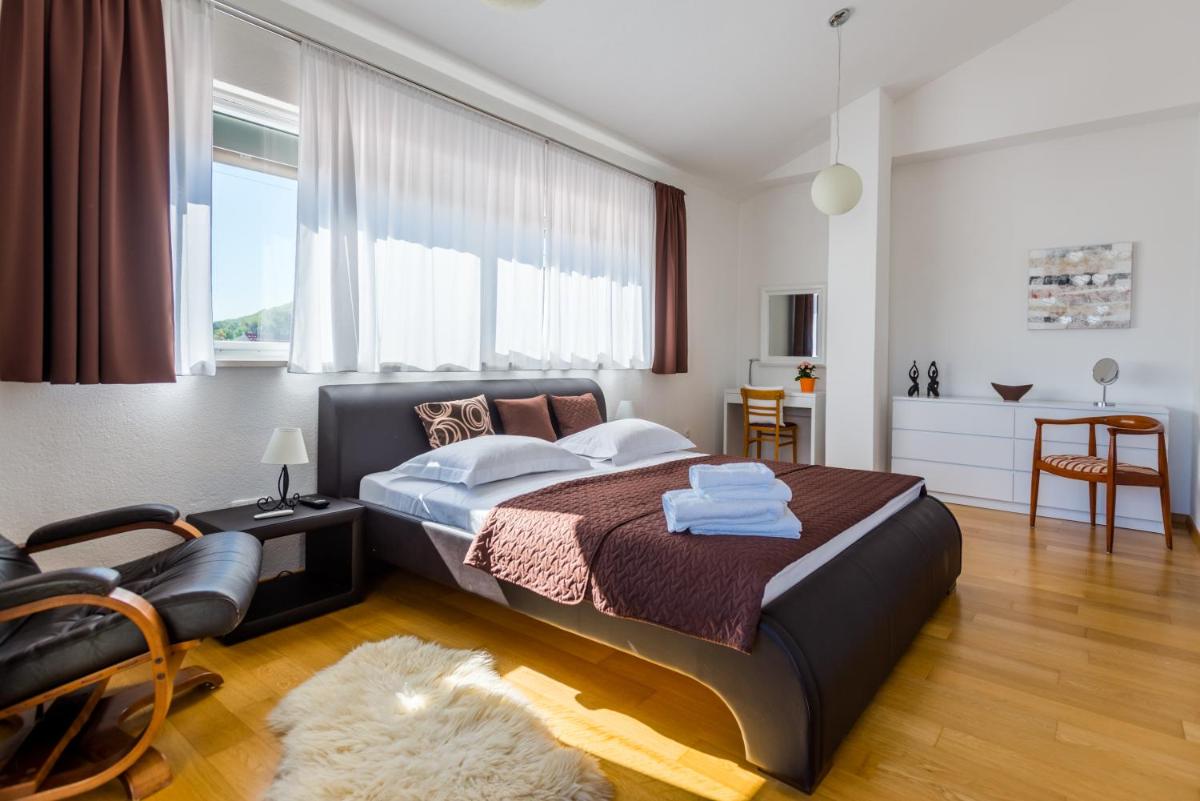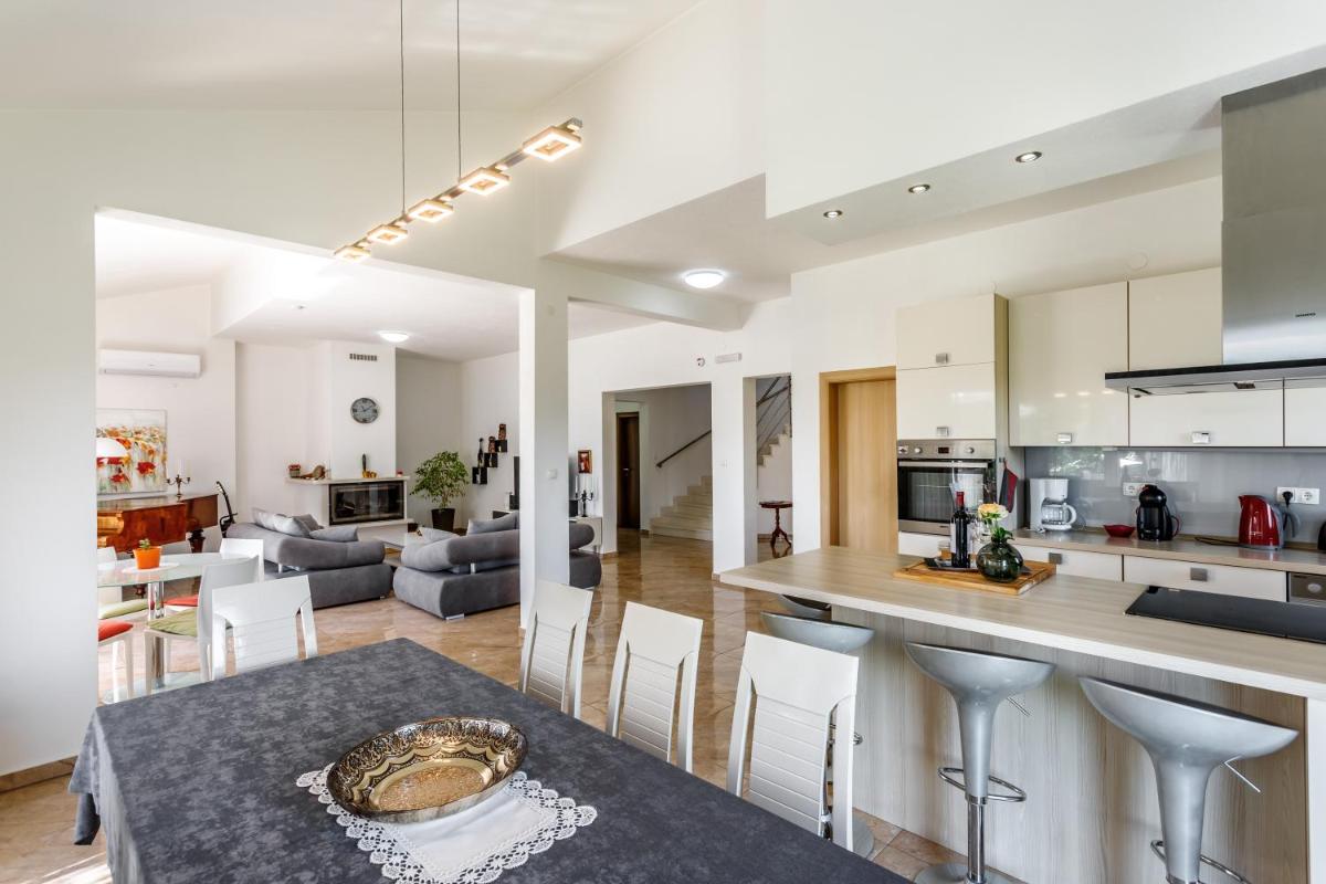 Luxury Villa Nadalina-Dicmo, located approximately 12 miles from Salona Archeological Park in Dugopolje, offers world-class service with amenities such as a sauna, hot tub, and free Wi-Fi. Guests enjoy access to a terrace with mountain views and a large pool featuring stunning views. The villa boasts 4 spacious bedrooms, a fully equipped kitchen, and 4 bathrooms, each offering a walk-in shower and a hot tub. Air conditioning ensures comfort throughout the stay, while a dressing room and fireplace provide additional warmth and ambiance. The villa’s private entrance and soundproofing create a serene retreat. Outdoor activities are plentiful; guests can enjoy a barbecue and participate in table tennis and darts games. Relaxation awaits in the well-maintained garden, where families will find ample space for outdoor fun. The villa is conveniently situated near attractions like Mladezi Park Stadium (13 miles), Diocletian’s Palace (14 miles), and Split Airport (21 miles).