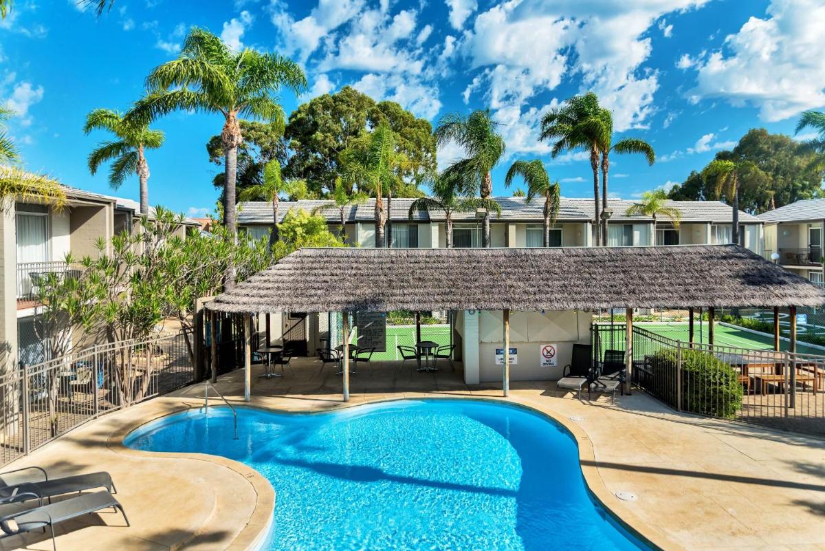 Mandurah Holiday Apartments offers comfortable accommodation near Silver Sands Beach, featuring an outdoor swimming pool, free parking, and a garden/terrace. It's within walking distance of popular attractions such as Halls Head Beach and San Remo Beach. Guests enjoy amenities like a bar and tennis courts. Rooms come with balconies offering views of the pool and feature modern kitchens equipped with essential appliances. The hotel serves American, British, and Italian cuisines, catering to various dietary preferences. Close by, there are facilities like a grill, mini-golf, and access to both Manjimup and Mussems airports.