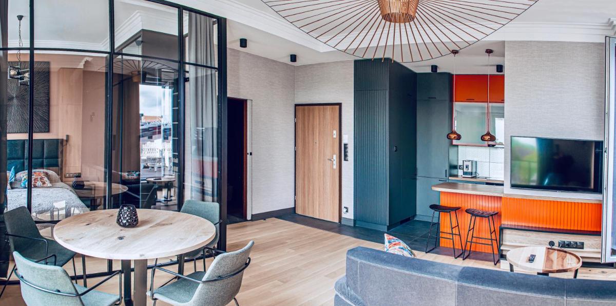 The spacious one-bedroom apartment in Manhattan, Puck, boasts a terrace and free WiFi. With its balcony offering stunning sea views, the apartment includes a fully equipped kitchenette, a washing machine, and modern amenities such as a dining area, work desk, and TV. The kitchenette features a refrigerator, oven, stovetop, and coffee maker. Additional comforts include a hairdryer, electric kettle, and kitchenware. Situated just 52 miles from Gdańsk Lech Wałęsa Airport, the apartment is conveniently located near Zielona Beach (6-min walk), Puck Beach (600 meters away), Gdynia Harbour (25 miles), and Shipyard Gdynia (28 miles). Guests highly rate this accommodation due to its comfortable living space, proximity to various attractions, and prime location.