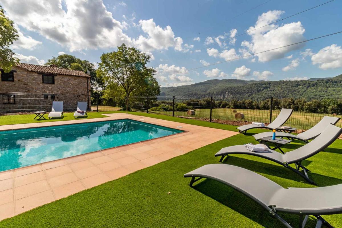 Located in Argelaguer, approximately 18 miles southeast of the renowned Dalí Museum and 24 miles north of Girona Train Station, Mas Aimà Casa Rural en la Garrotxa offers a serene retreat amidst picturesque landscapes. Situated within easy reach of various attractions such as the stunning Peralada Golf Club, the historic Figueres Vilafant Train Station, and the charming town of Pont de Pedra, this luxurious villa provides a perfect base for exploring the region's rich cultural heritage and natural beauty.