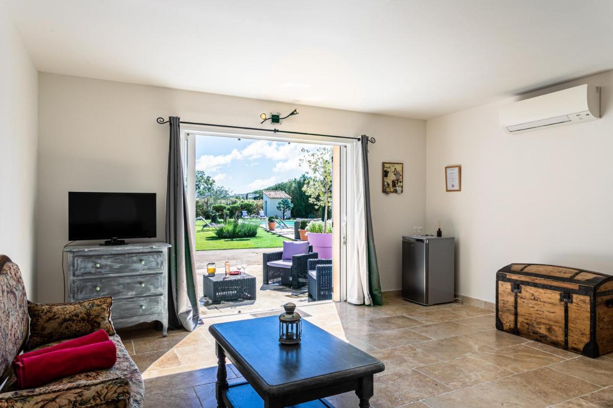 Nestled among verdant gardens, Mas Saint Julien offers breathtaking views of its serene outdoor pool, making every moment spent there truly memorable. With a variety of dining options available, including a choice between a continental breakfast and various beverages, Mas Saint Julien caters to diverse preferences and needs.