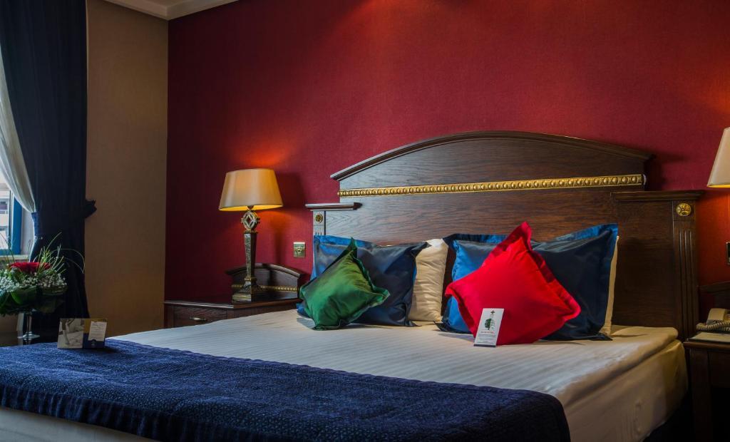 Each of the hotel's rooms is meticulously designed, featuring an elegant aesthetic enhanced by rich fabrics and sophisticated furnishings. The spacious bathrooms boast marble tiles, granite countertops, and gold-plated fixtures, providing both elegance and practicality. Guests enjoy complimentary hot and cold drinks facilities, making mornings more welcoming. Satellite flat-screen TVs further enhance their viewing pleasure.