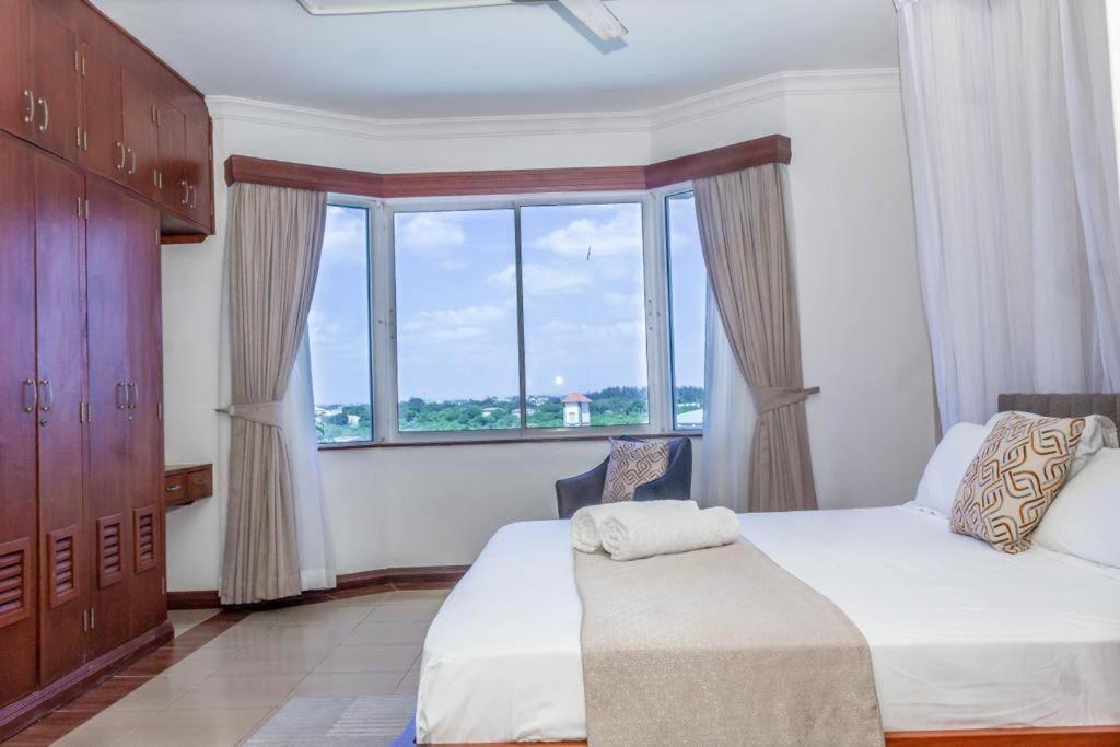 Ikhaya Serviced Apartments with Sea View, located in Nyali, Mombasa, offers luxurious accommodations just 1.5 miles from Kenyatta Public Beach and 1.8 miles from the Nyali Golf Course. Enjoy a serene balcony view while taking advantage of complimentary private parking. The spacious apartment features two bedrooms, a comfortable living room, an equipped kitchen, and two bathrooms. Guests can relax by watching their favorite shows on the flat-screen TV. For added convenience, nearby attractions such as Mamba Village Crocodile Farm and Nakumatt Cinemax are within easy reach. The apartment's non-smoking status ensures a clean environment. Popular destinations near the property include Mombasa Beach, Nyali Beach, and Haller Park. Conveniently situated 11 miles from Moi International Airport, this charming residence provides a perfect base for exploring Mombasa's vibrant culture and stunning coastline.