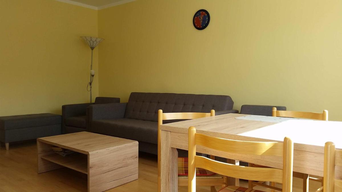 Apartament Grand Sunny, situated in Dziwnówek, offers a charming terrace offering panoramic city views. Conveniently located within walking distance from Dziwnówek Beach and just 0.7 miles from Radawka Wild Beach, this apartment features free private parking and various recreational opportunities including hiking and cycling. Spacious and inviting, it comprises 3 bedrooms, 1 bathroom, and comes equipped with bed linens, towels, a flat-screen TV with satellite channels, a dining area, a fully-equipped kitchen, and a balcony with garden views. Guests can enjoy amenities such as a playground. Eastern Dziwnów Beach is approximately 1.3 miles away, while the nearest airport, Solidarity Szczecin-Goleniów, is around 38 miles from the property and offers a paid airport shuttle service.