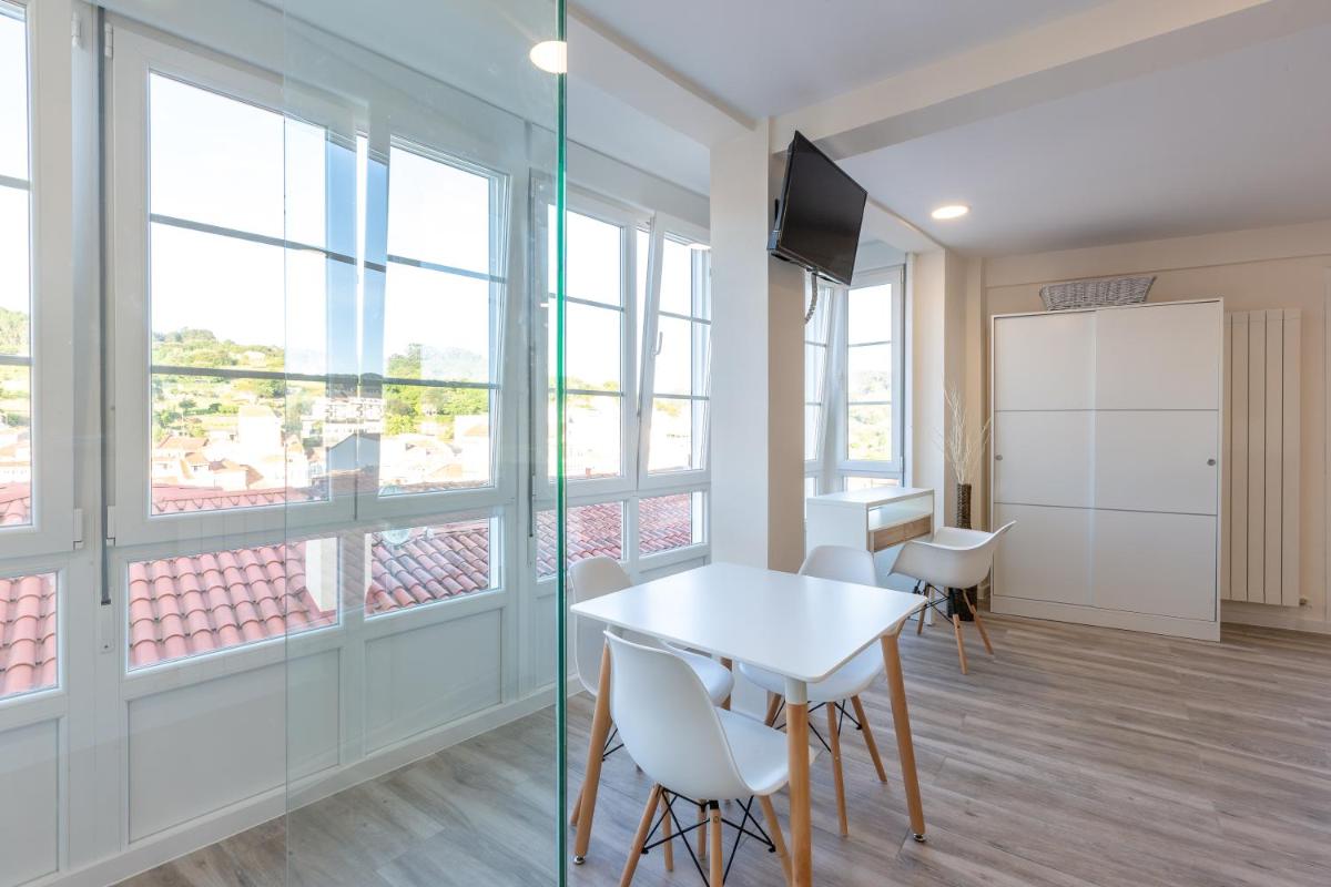 MIRADOR DE LA MURALLA in Betanzos offers guests a peaceful retreat with its quiet street views and modern amenities. This charming apartment boasts a spacious balcony offering panoramic city vistas, perfect for unwinding after a day exploring Betanzos' rich history and culture. The fully-equipped kitchen includes essential appliances such as an oven and microwave, ensuring convenience for both cooking and entertaining. Guests can relax by the flat-screen TV, savoring their favorite shows or movies. The private bathroom features a walk-in shower and a hairdryer, providing ample comfort before bedtime.