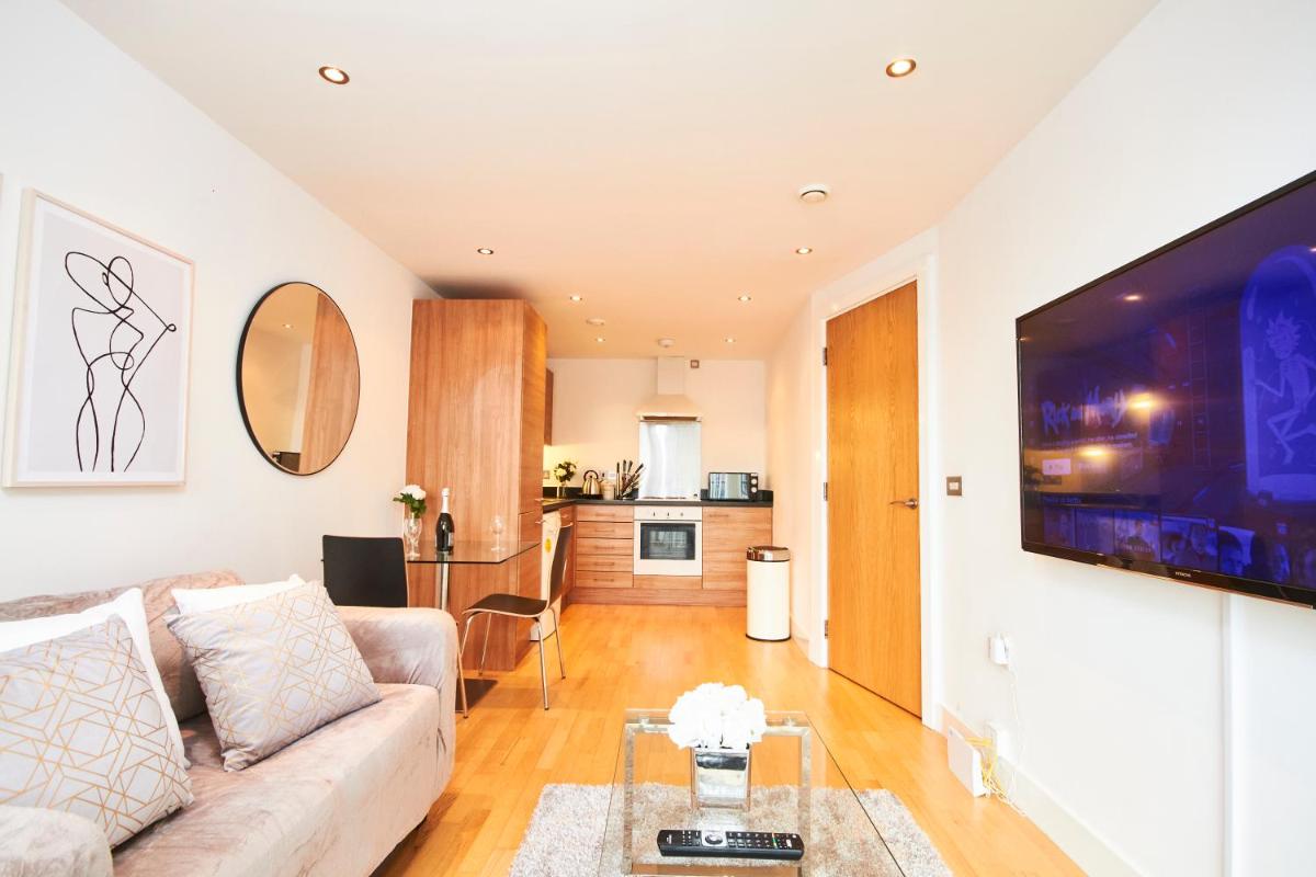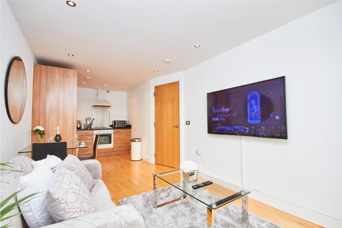 The luxurious Deluxe Leeds City Centre Apartment boasts impeccable accuracy in its descriptions and stunning photos, offering guests unparalleled convenience. Situated within walking distance to key landmarks such as Leeds Town Hall and the 02 Academy, this apt provides easy access to numerous attractions and amenities. With a spacious 1-bedroom layout featuring a balcony, this accommodation offers ample space for relaxation and entertainment.
