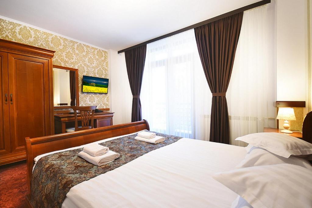 Description: Hotel Moldavia in Slănic-Moldova boasts 3-star accommodations featuring a lush garden, a charming terrace, and an inviting restaurant. This welcoming establishment offers complimentary high-speed Wi-Fi and ample free private parking. Rooms come equipped with desks, flat-screen TVs, private bathrooms, bed linens, towels, and closets. Guests relish a buffet or continental breakfast option. Conveniently located near Bacau International Airport, just 45 miles away, this hotel caters well to couples, boasting an impressive 9.8 rating for a two-person trip.