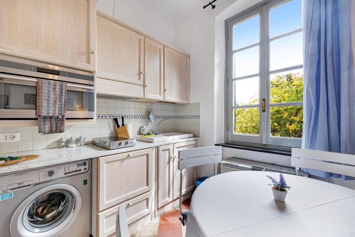 Monolocale Isotta in Finale Ligure, offering a spacious one-bedroom apartment with a private entrance featuring a balcony overlooking a garden and scenic mountains. Equipped with modern amenities such as free WiFi, a washer/dryer, and an oven/stovetop, guests can enjoy comfortable living with a fully-equipped kitchen at their disposal. Pets are welcome, and the apartment has a private bathroom with shower. Located just 2 miles from the beach and 61 miles from Genoa's airport, visitors will find nearby attractions such as Baia dei Saraceni (7 miles) and Toirano Caves (19 miles). The property measures 25 square meters and comes with free parking and air conditioning throughout.