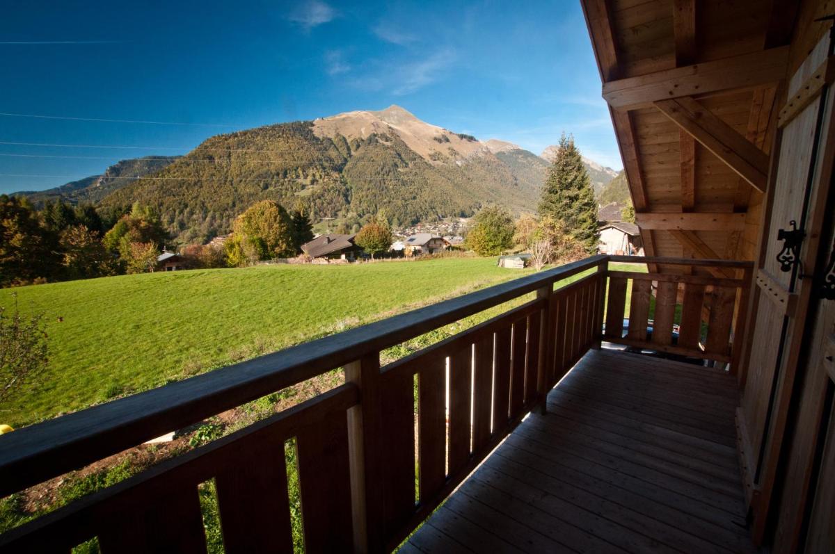 Great location on outskirts of Morzine, overlooking farmers fields with lovely views beyond.