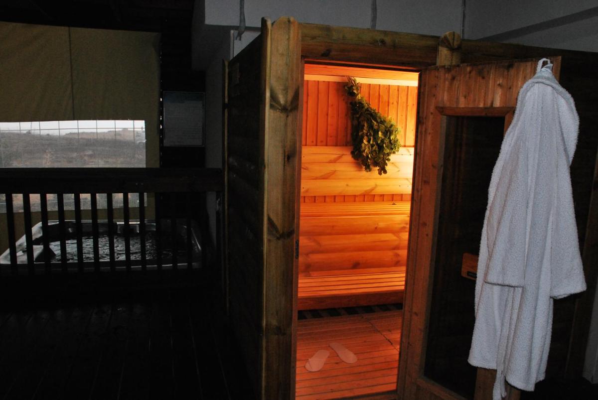 The lodge provides guests with a terrace, a seating area, cable flat-screen TV, a fully equipped kitchenette with a fridge and a microwave, and a private bathroom with shower and bathrobes. A stovetop and kettle are also provided.
