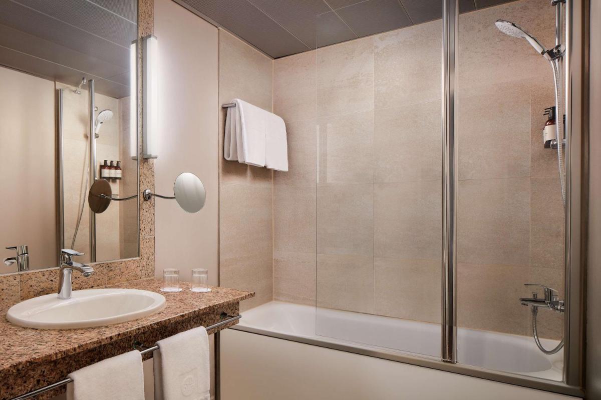 Each spacious, air-conditioned room at the NH Collection Heidelberg features tasteful decor infused with rich wood tones and earthy hues, enhancing the serene ambiance. Guests relish the addition of complimentary hairdryers in their bathrooms, ensuring a refreshing end to each day's activities.