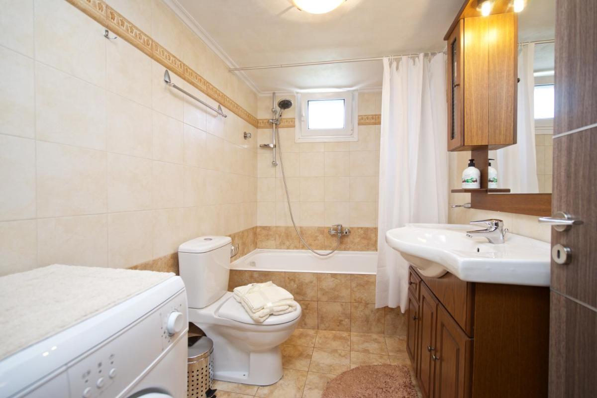 The apartment at Ntina's house in Karavomylos features two bedrooms, an open living area, and stunning sea and garden views. It comes complete with modern amenities including a fully equipped kitchen, non-smoking rooms, family rooms, free WiFi, and private bathrooms.