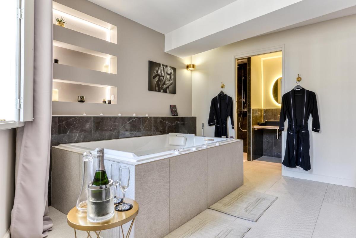 Quiet apartment, very well appointed and decorated, with little extras (petals, candles, fireplace, bathrobes, books, etc.). Very accessible host...