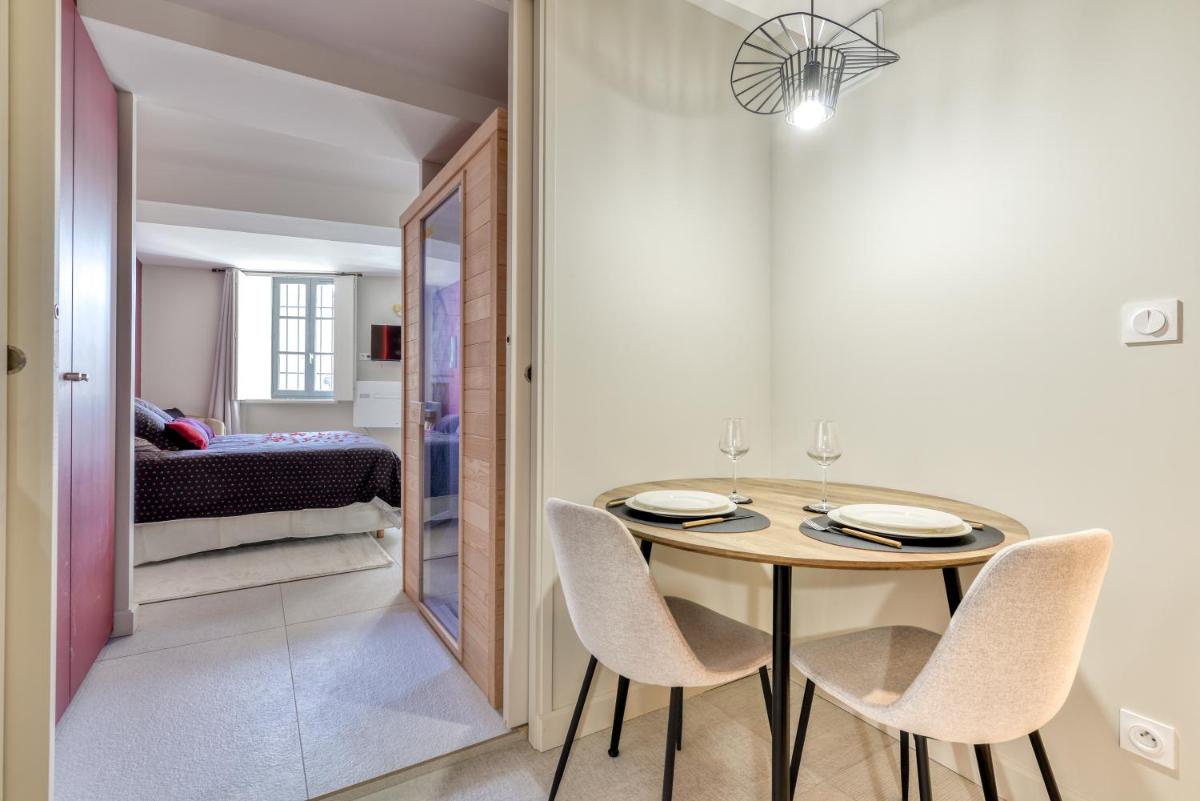 Close to small shops and the city, very clean and well equipped, quality balneotherapy and sauna, top-notch bedding, perfect for an evening...