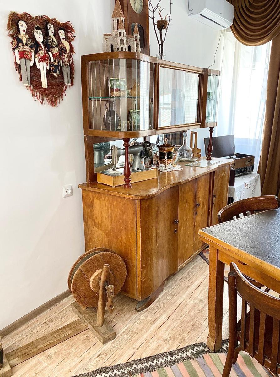 The apartment had vintage carpets and furniture.