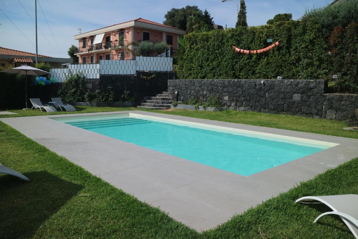 Orchidea dell'Etna, an elegant holiday home nestled in Zafferana Etnea, Italy, offers a tranquil escape featuring a sun terrace, verdant garden, and a seasonal outdoor swimming pool. This charming abode includes family rooms, private bathrooms, a fully-equipped kitchen, and a suite of comfortable accommodations. Enjoy free Wi-Fi throughout, while relaxing in a hot tub overlooking the sea. Conveniently located just 17 miles from Catania Fontanarossa Airport, Orchidea dell'Etna provides easy access to various attractions, ensuring a memorable holiday experience.