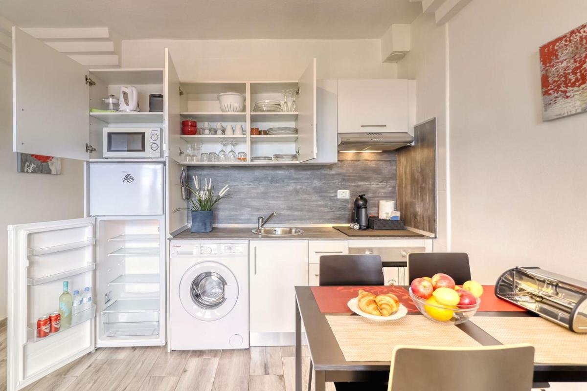 Very modern, clean, and well-equipped apartment with a great view and a nice pool area.