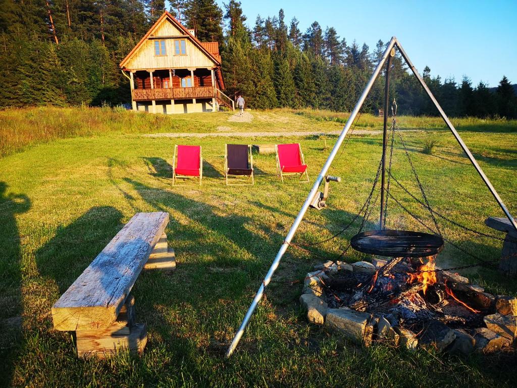 Osada na Granicy - Domki w Bieszczadach in Ustrzyki Dolne offers a comfortable holiday home with two bedrooms and three bathrooms. Features include a spacious living room, fully equipped kitchen, and a private entrance. Enjoy a sun terrace, garden, and free WiFi. Also, experience an outdoor fireplace, barbecue, and picnic area. Private check-in and check-out, 24-hour front desk, ski pass sales point, ski storage, and free on-site private parking are available. Parking space is within 500 meters. The holiday home is near Krzemieniec, The Solina Dam, and Bieszczady National Park. It's highly rated by guests.