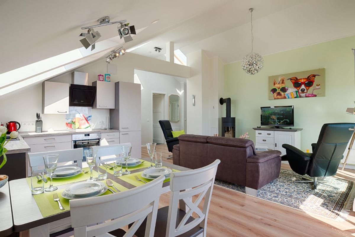 The Ostsee Apartment Nr. 99, "Ostseepanorama," located within the Strand Resort in Heiligenhafen, offers guests a picturesque waterfront retreat just steps from the bustling Heiligenhafen Beach. Situated approximately 7.3 kilometers north of Fehmarnsund and 18 kilometers east of Water Bird Nature Reserve Wallnau, the property is conveniently situated for exploring local attractions such as WaWaCo Wakeboard and Wasserski & Co., both of which are 12 miles from the resort. For those seeking a quieter environment, the nearest beach is Steinwarder Beach, which is just 1.4 miles away.