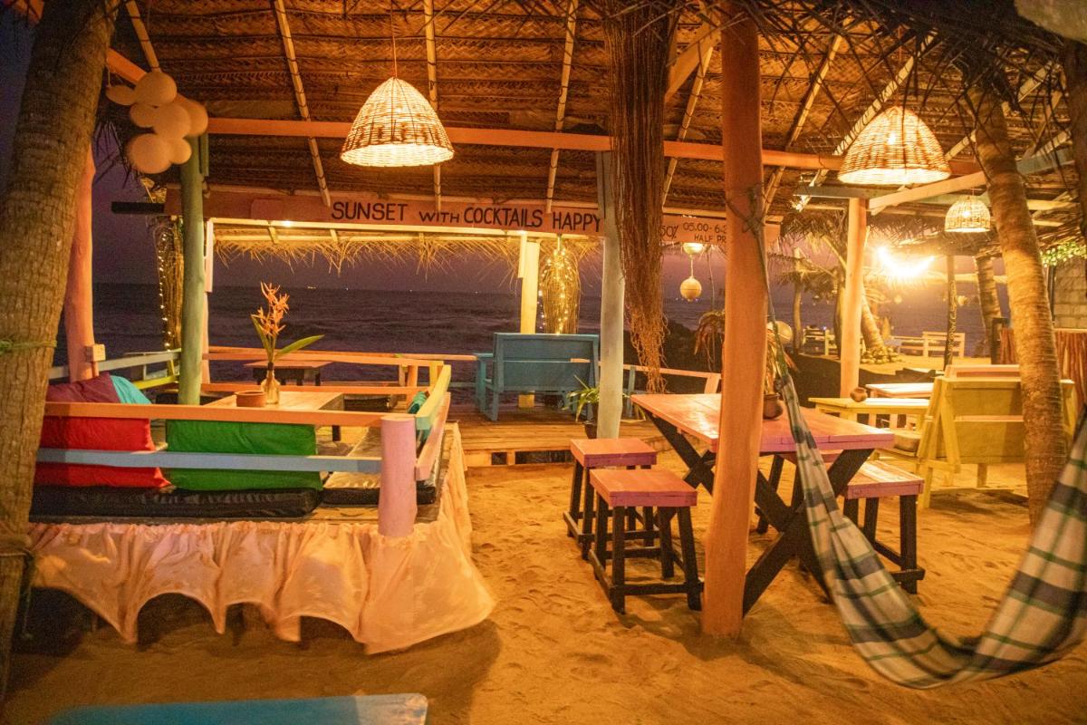 Cute little cabanas to sleep in, right at the beach, easy vibe, lovely people, very nice place to chill.