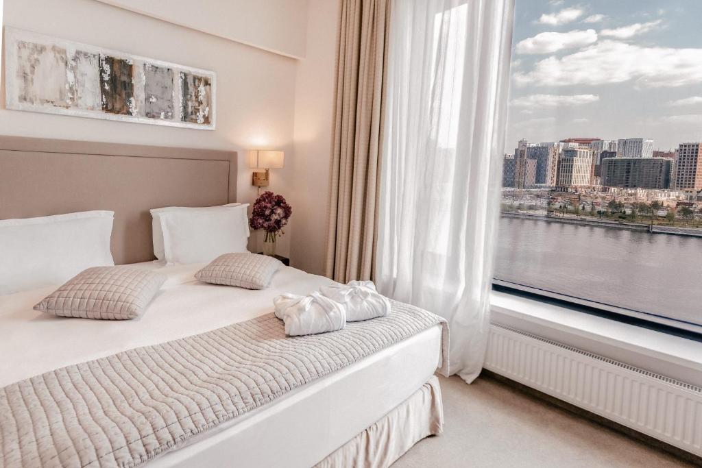 Rooms offer a spacious layout with a river view.