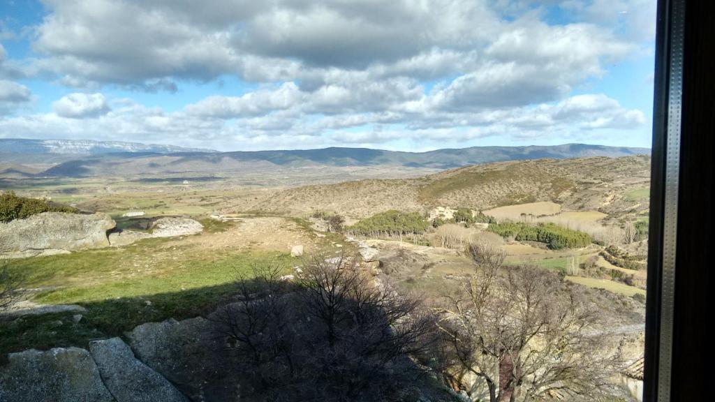 Very comfortable, large room with a view of the valley and hills.