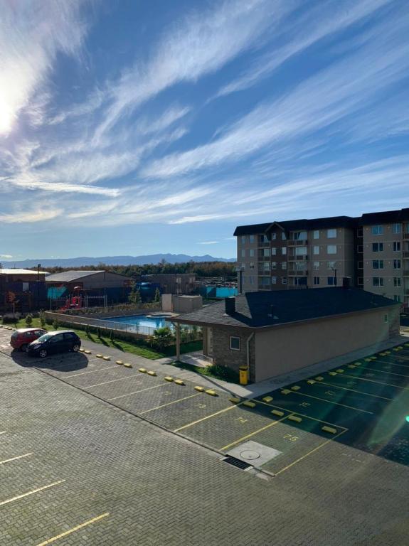 Parque el Volcan, nestled within Villarrica, offers a charming abode featuring two bedrooms, a well-equipped kitchen boasting an oven and toaster, a washer, and a bathroom with a hairdryer. Guests enjoy complimentary towels and linens upon arrival. The property boasts a private balcony, providing scenic views. Non-smokers are welcome here, ensuring a peaceful retreat. Accessible by car via a free private parking lot, the accommodation offers secure check-in services 24 hours a day. Located approximately 24 miles from Villarrica - Pucón and just under three miles from the breathtaking Ojos del Caburgua Waterfall, this villa promises a perfect getaway. The spacious 44-square-meter space includes a backyard where children can splash around at the nearby kids' pool during summer months. For those seeking relaxation, the resort's outdoor swimming pool awaits, offering a refreshing dip after a long day exploring the area.
