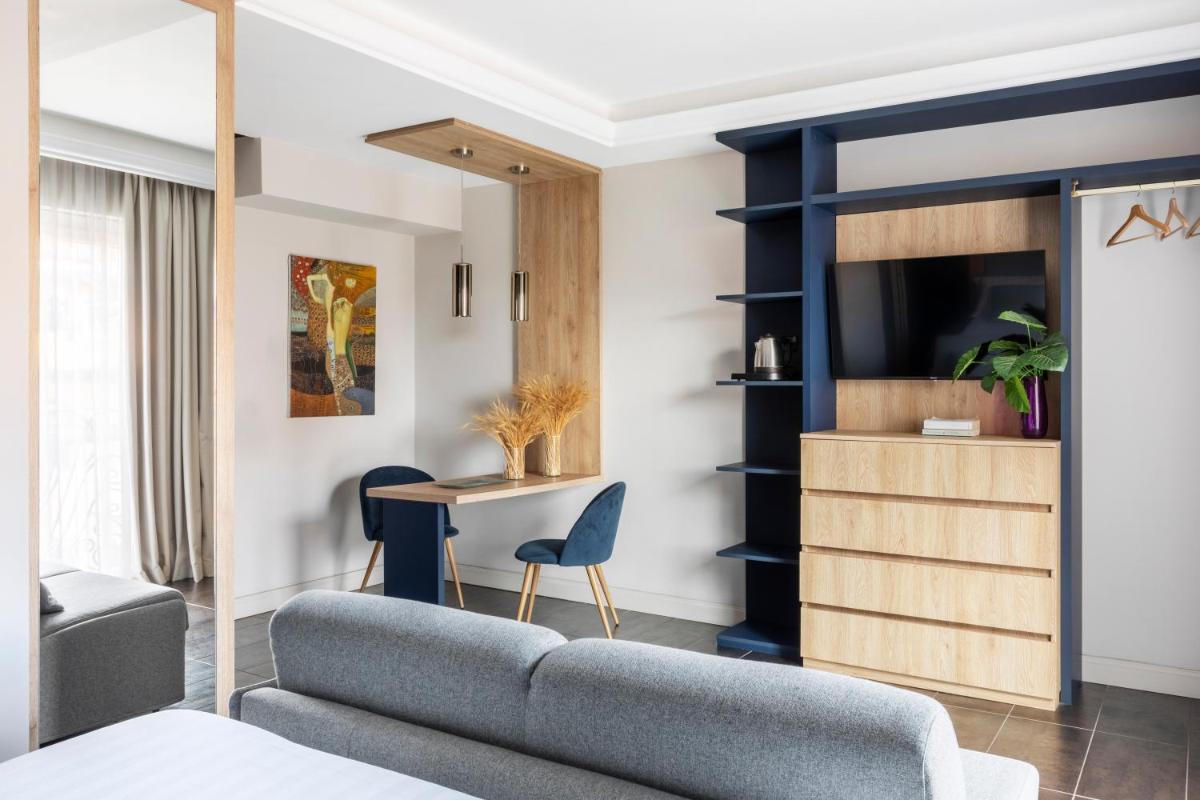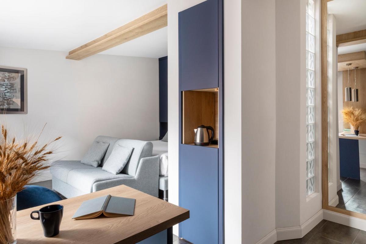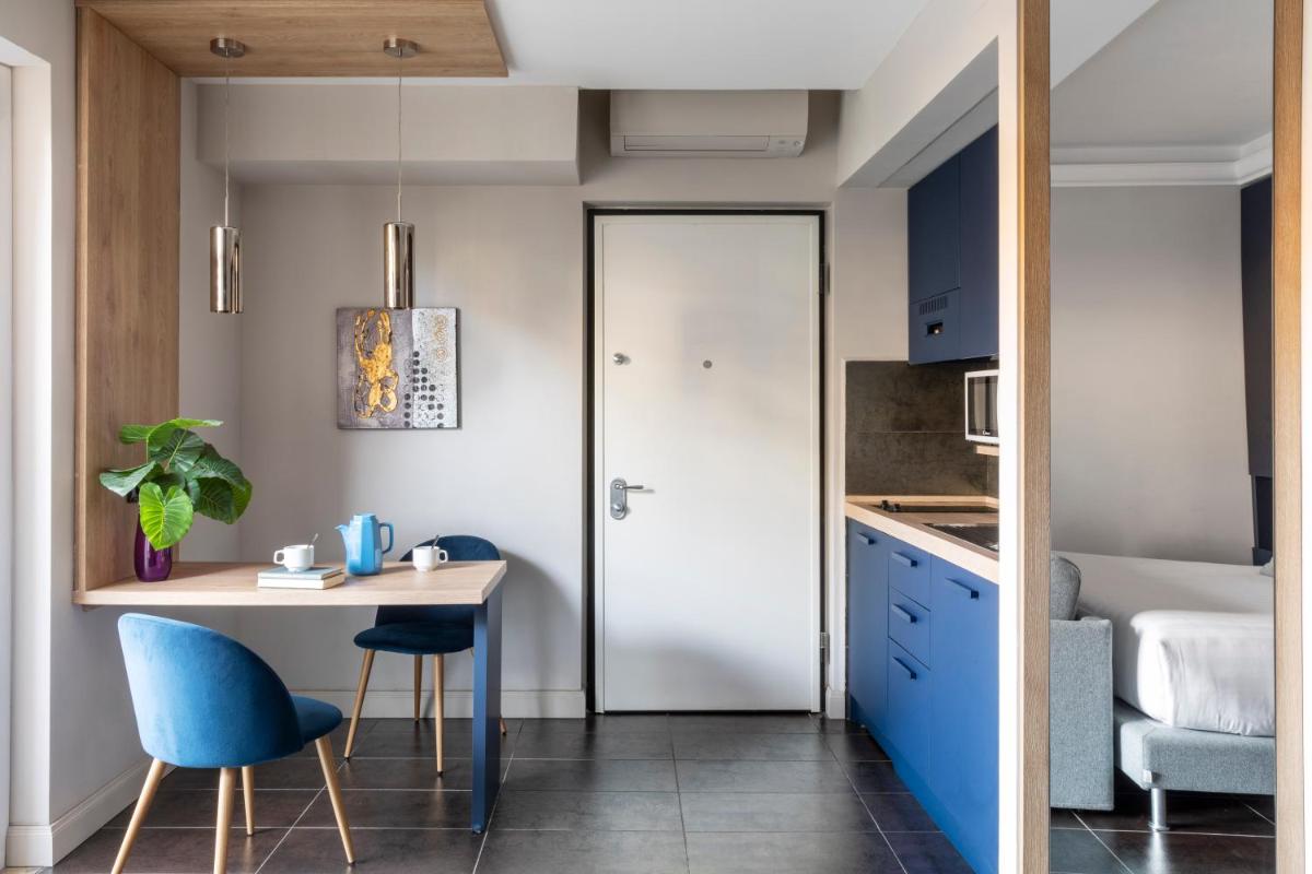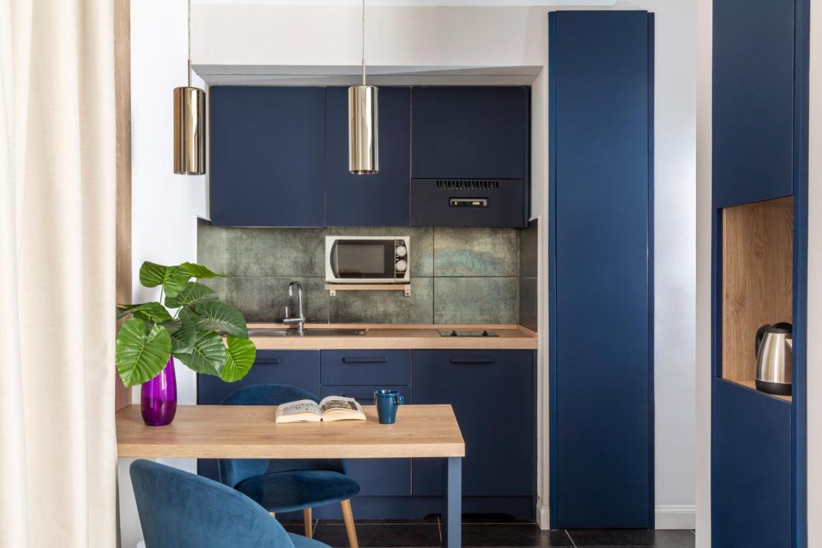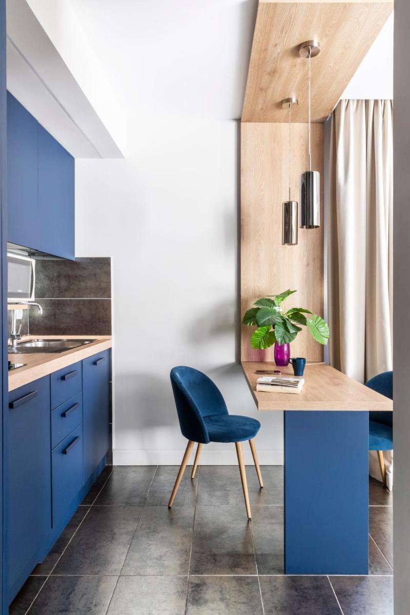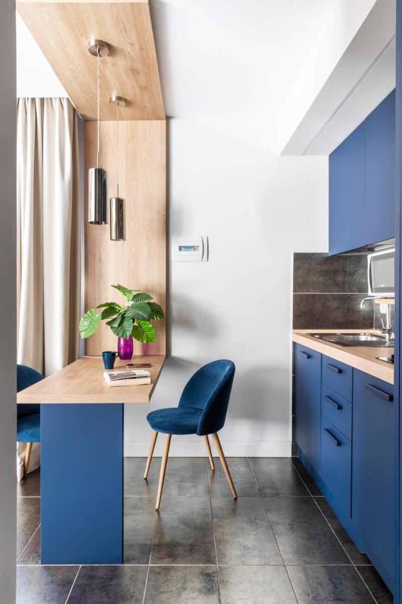 Each apartment boasts a unique interior design and comes complete with a fully-equipped kitchenette and dining area. Some units feature balconies offering picturesque views of their surroundings. Private bathrooms are conveniently stocked with essential amenities such as a hairdryer and ironing facilities upon request.