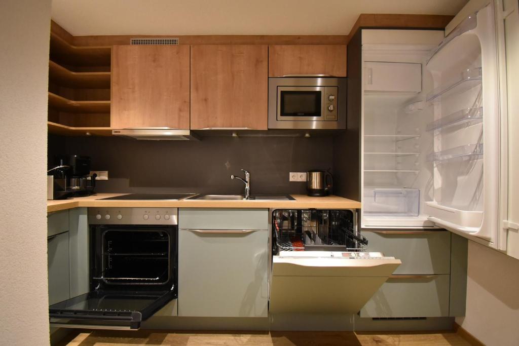 Very modern apartment and extensive kitchen equipment. Bread roll service was great