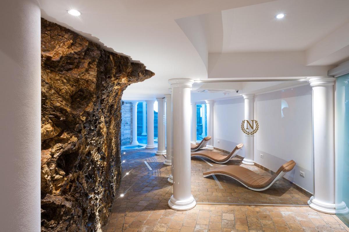 Hotel Plaza's 100m² spa offers various beauty and wellness treatments. It includes a Turkish bath, sauna, and a small heated pool with hydromassage areas. A relaxation area with herbal teas is also available at the spa.