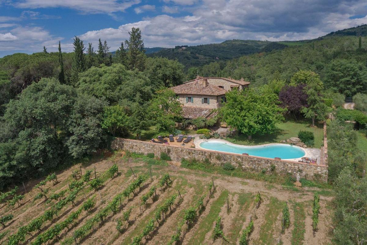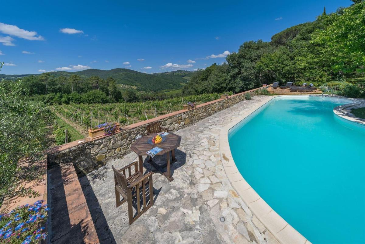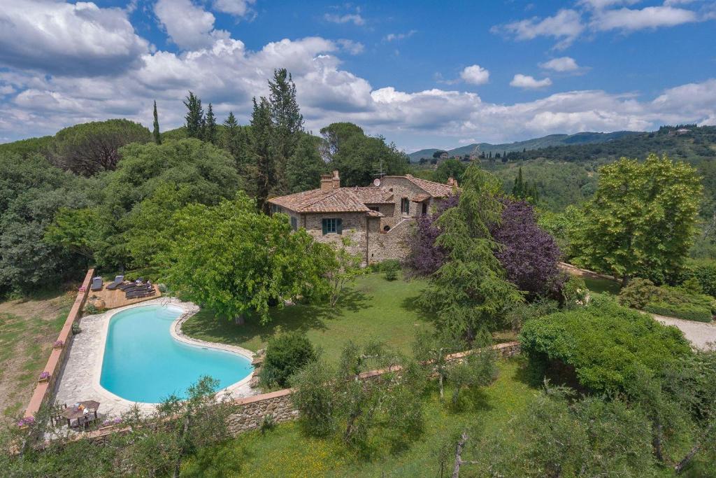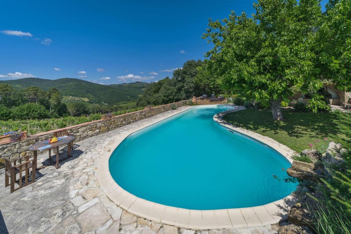 Porciglia Alta, nestled in Greve in Chianti, offers an inviting retreat within walking distance of historic sites and just over two hours' drive from major attractions. This luxurious villa features four spacious bedrooms, each adorned with tasteful decor and ample storage space, providing comfort for up to eight guests.