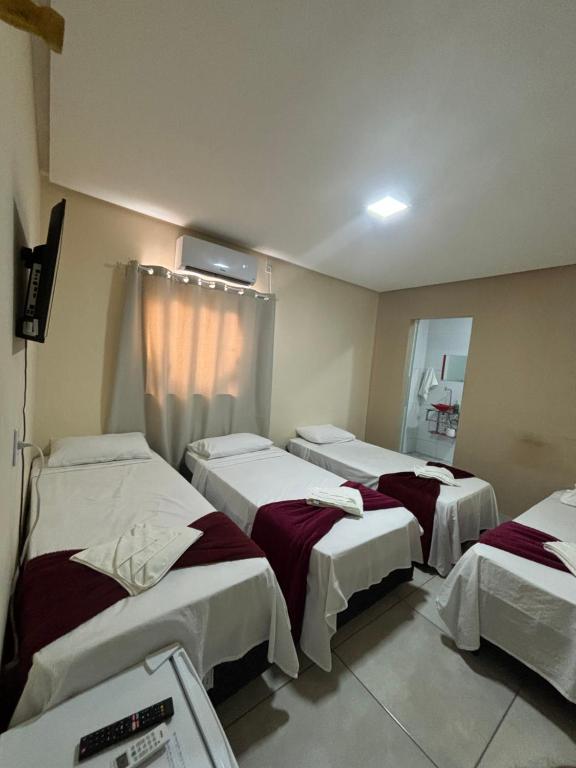 The Pousada Vista da Serra - Suzart, located in Lençóis, boasts accommodations that offer convenient access to Pai Inacio Mountain, situated just 29 kilometers away. This 3-star hotel provides guests with various amenities, including a well-maintained garden, free private parking, and a terrace where one can enjoy pleasant outdoor activities. Air-conditioned rooms come equipped with a private bathroom, free WiFi, and a flat-screen TV with satellite channels, ensuring comfort during stays. Additional perks include extra facilities such as a concierge service, meeting rooms, and a tour desk. Guests will appreciate the convenience of having a kitchenette with an oven and a stovetop in their selected rooms, making cooking meals easy. A buffet, continental, or vegetarian breakfast option is available upon request, offering options tailored to dietary preferences. For those traveling by car, the hotel is conveniently located near the Lençóis Airport, which is approximately 23 kilometers away. To enhance their experience further, visitors can take advantage of the paid airport shuttle service offered by the establishment.