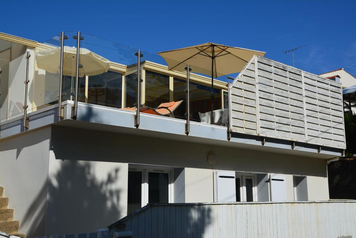 VUE MER PREFAILLES, PLAGE à 50m, Préfailles, France - A charming beachfront retreat offering breathtaking sea views and direct access to a balcony. Located just 7.6 miles from Pornic Castle and 7.8 miles from Noëveillard Harbor, this spacious vacation home features two bedrooms, a fully-equipped kitchen, and a private entrance. Enjoy a peaceful oasis with its own terrace, while taking in the vibrant surroundings through the open-air dining area. Close to popular attractions such as Plage de la Raise, Plage de l'Anse du Sud, and Châteaux Beach, this seaside paradise awaits your visit.