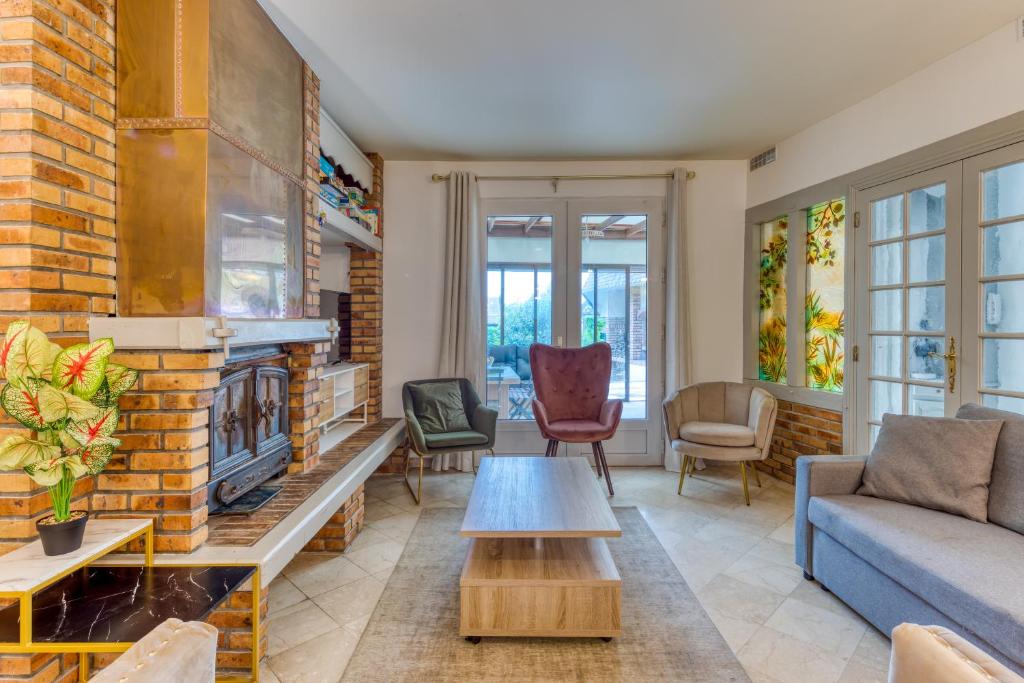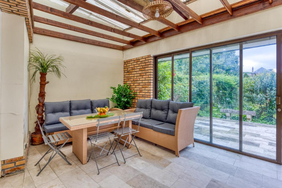 Relax en Normandie offers a range of amenities including a spacious seating area, a flat-screen TV with streaming options, a fully equipped kitchen, a private bathroom with a hairdryer, essential appliances such as a microwave, toaster, refrigerator, coffee maker, and kettle, heating facilities, an indoor pool, a beautiful garden, and a terrace.