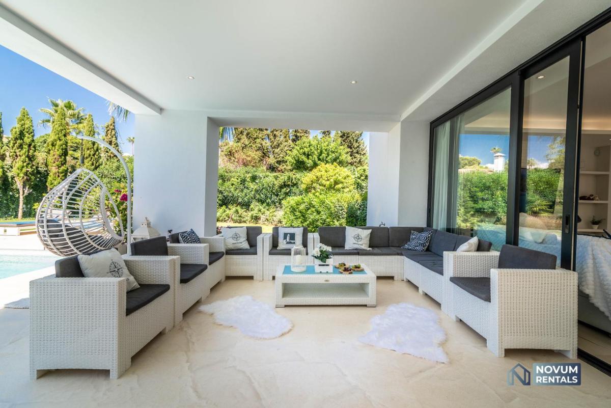 Remarkable 5-BDRM Villa - Heated POOL & GYM, located in Estepona, boasts luxurious accommodations featuring a heated pool, gym, and balcony. This stunning villa offers free private parking, Wi-Fi, and panoramic views of the surrounding mountains. Each bedroom provides ample space, with a comfortable air conditioning system, and modern amenities such as a flat-screen TV, fully-equipped kitchen, and multiple bathrooms with bathtubs and showers. The villa’s outdoor dining area invites relaxation under the Mediterranean sun. Situated just 1.2 miles from El Saladillo Beach and 19 miles from La Duquesa Golf Club, this property is conveniently accessible via paid airport shuttle services. With its spacious 505 square meters and the option to rent out the entire villa, Remarkable 5-BDRM Villa - Heated POOL & GYM stands out as a perfect retreat for those seeking comfort and luxury in a prime location.