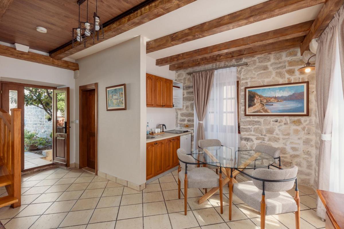 Situated at the picturesque periphery of Perast, our hotel stands as a beacon of elegance amidst the quaint town's charm. Nestled along the coastline, we offer an array of luxurious accommodation options, each exuding sophistication and comfort. Our suite and apartment units are meticulously designed, featuring modern amenities such as free Wi-Fi access throughout all areas, ensuring seamless connectivity during your stay.