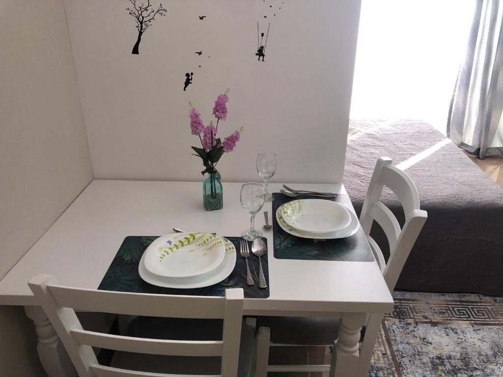 The apartment comes complete with a fully equipped kitchenette stocked with essentials such as a toaster, dining area, flat-screen TV with cable channels, and a private bathroom boasting a shower and slippers. Additional facilities include a refrigerator, a stove-top, and kitchenware, along with a kettle. Guests can rest assured knowing they will have bed linens and towels provided upon arrival.