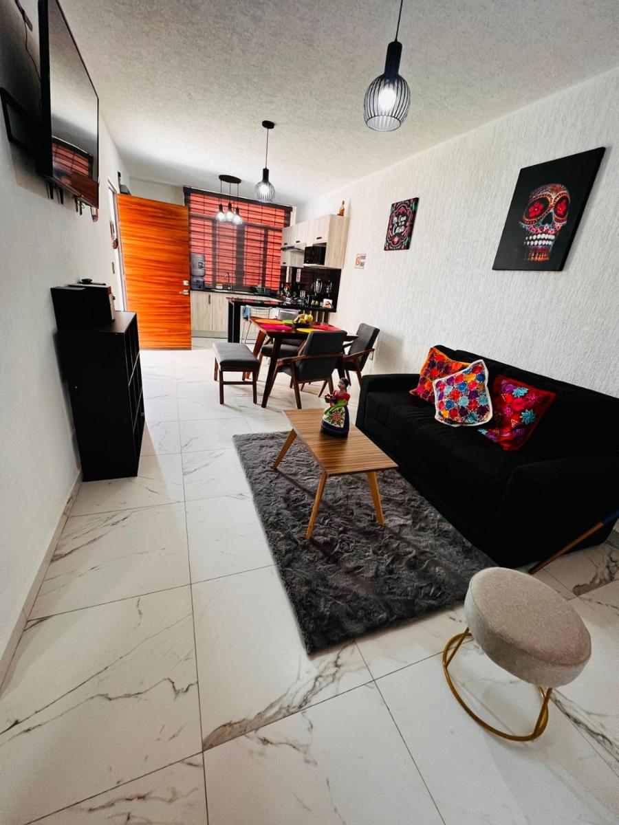 Rincón del Sol Depa en Manzanillo Colima offers an ideal location just 16 minutes' stroll from Azul Beach. This charming accommodation features a well-equipped apartment with access to a communal swimming pool, perfect for those seeking a relaxing getaway. The apartment boasts two bedrooms, a cozy living room, a fully equipped kitchen with essential appliances, and a spacious balcony offering stunning views of the surrounding area.