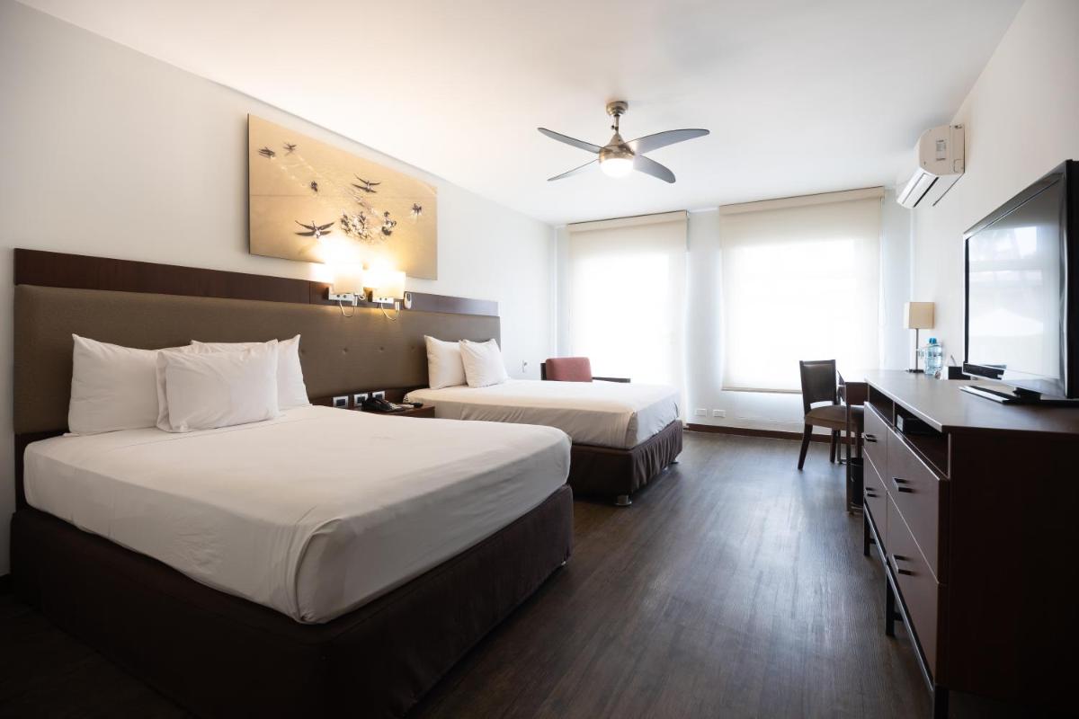 Casa Andina Premium Piura offers a luxurious experience in Piura, Peru, with its exceptional amenities and prime location. Situated just 1.2 miles from the bustling main square and within walking distance to the nearby open plaza shopping center, this premium accommodation provides guests with unparalleled convenience and comfort. The hotel boasts an inviting atmosphere, featuring spacious rooms equipped with private bathrooms, modern air conditioning, flat-screen satellite TV sets, and complimentary Wi-Fi access throughout the premises. Guests also enjoy the convenience of a fully stocked mini-bar and room service options upon request.